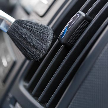 Interior - Blowout of Interior w/ compressed air. 3 Stage meticulous vacuum 1- Preliminary Vacuum, 2- Using Anti-Static Product to inhibit the electrostatic adhesion of dust particles 3-During Final Inspection. Interior cleaner and protectant used to clean dash, door panels, air vents, center console, infotainment screens, cup holders, steering wheel, and Instrument cluster. Steering wheel is detailed ensuring that all oils, sunscreen, lotions, makeup and all other general crime is removed. All glass interior and exterior cleaned to a streak free finish. Deep cleaning and neutralizing chemical used on all carpets and upholstery. Leather seats and surfaces are cleaned and conditioned . Floor mats cleaned and conditioned (All weather matts cleaned and conditioned - Carpet matts cleaned with same process as carpet.) Floor mats and pedals dressed in non-slip dressing.Door jams and sills cleaned and detailed.