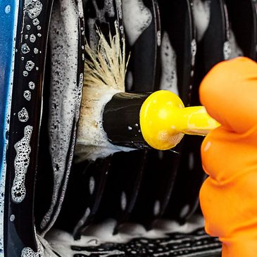 To help make our detail services below more simple and streamlined, I will explain our exterior wash process here, because no matter which service you choose the exterior wash is the same general process except for: how much of a de-contamination process is needed, the type of coating, wax or sealant used on the paint, and the level of or how long the rubber and trim dressing will protect your tires and black plastic trim. We have a hybrid wash method where we use a combination of foam cannons, foaming and non foaming sprayers as well as conventional wash buckets. We start with a pre-wash foam, this is to remove most of the physical dirt, grime and bugs. As this foam dwells on your cars surface it encapsulates the dirt, grime and bugs and when rinsed, washes away 85-95 % of the physical dirt, bugs and grime. Our next step in the process if to clean the wheels, tires and wheel wells as this is generally one of the dirtier areas of the car. After cleaning each wheel, tire and wheel well we clean out the brushes used, and use clean wash media for each wheel. If you clean the wheels after the car is clean you allow for the possibility of the dirt and grime from the wheel, tire and wheel wells as well as contamination from the brakes being sprayed or blown back onto a clean surface of your vehicle. We then re-foam the car with a car washing solution. At this point most of the dirt and contaminants have been removed from the vehicle and all that's left is a layer of road and traffic film.